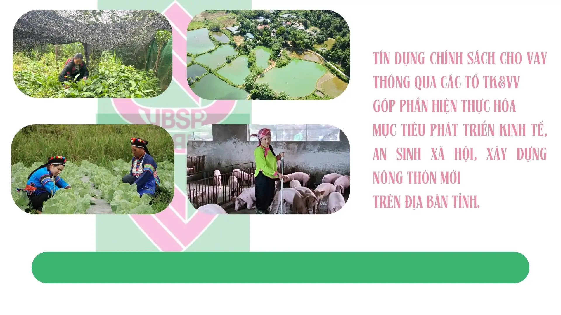 Tín dụng chính sách cho vay thông qua các tổ TK&VV đến đúng đối tượng thụ hưởng đã góp phần tích cực, hiệu quả vào mục tiêu phát triển kinh tế, an sinh xã hội, xây dựng nông thôn mới trên địa bàn tỉnh. Ngoài ra, thủ tục, chính sách cho vay ngày càng thuận lợi đã giúp cho các hộ vay vốn khởi tạo sản xuất, kinh doanh, tăng thu nhập và thoát nghèo bền vững.