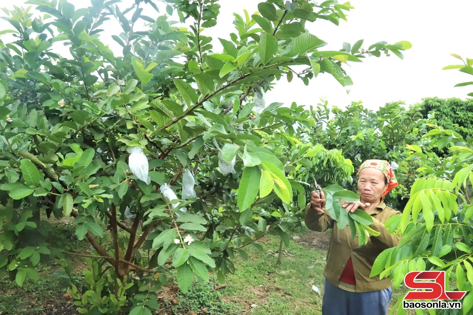 Nông dân xã Chiềng Sơ chăm sóc vườn cây ăn quả.