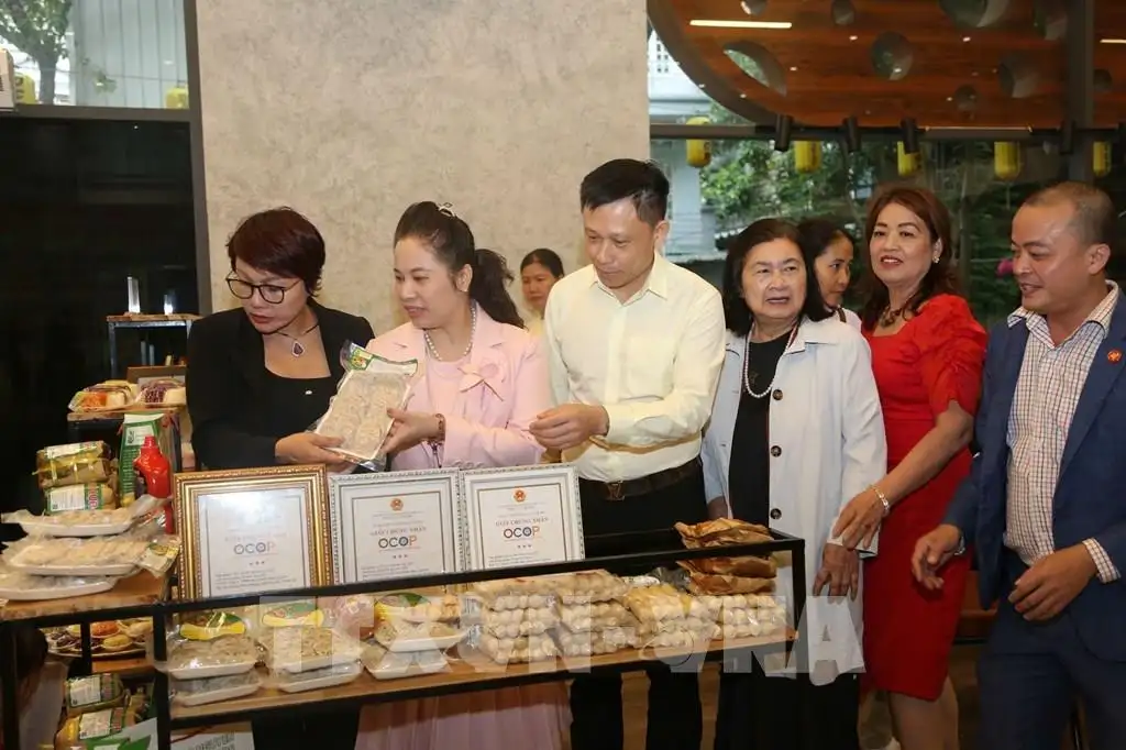 Trong khuôn khổ tọa đàm, 13 gian hàng trưng bày sản phẩm OCOP tiêu biểu của Hà Nội đã được tổ chức tại không gian phường Tây Hồ, giới thiệu các sản phẩm đặc sắc từ gốm sứ, mây tre đan, thổ cẩm, lụa, thực phẩm chế biến, nông sản sạch… góp phần quảng bá hình ảnh sản phẩm hàng Việt đến gần hơn với công chúng.