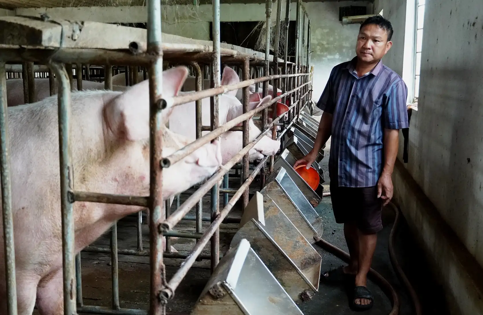 Ông Đặng Văn Vang chăm sóc đàn heo nái.