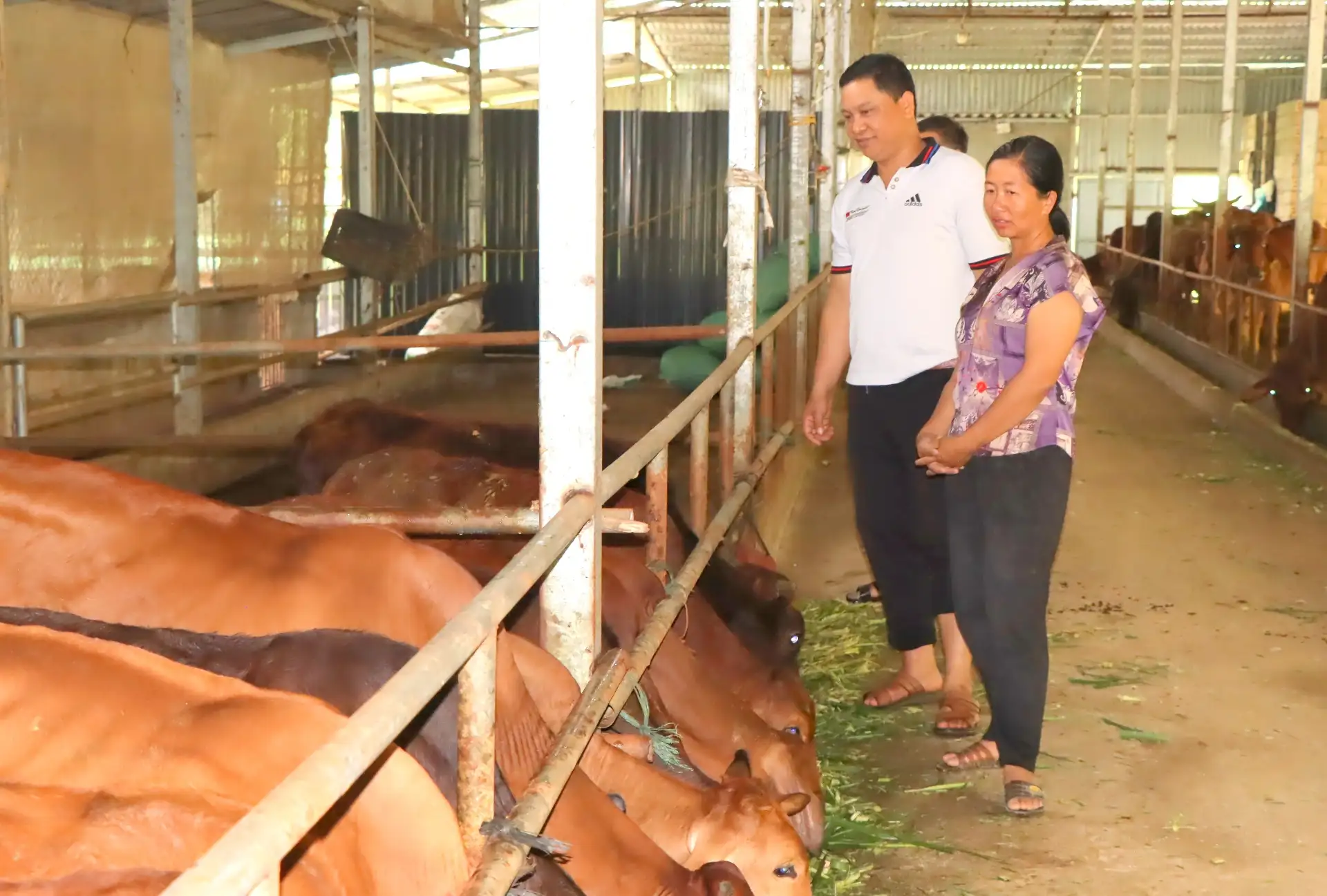 Xã Mường Than thường xuyên cử cán bộ xuống các hợp tác xã để nắm bắt tình hình, tư vấn, hỗ trợ các HTX.Trong ảnh:Cán bộ xã Mường Than thăm mô hình chăn nuôi bò của Hợp tác xã Nông nghiệp – Nông thôn Phúc Than.