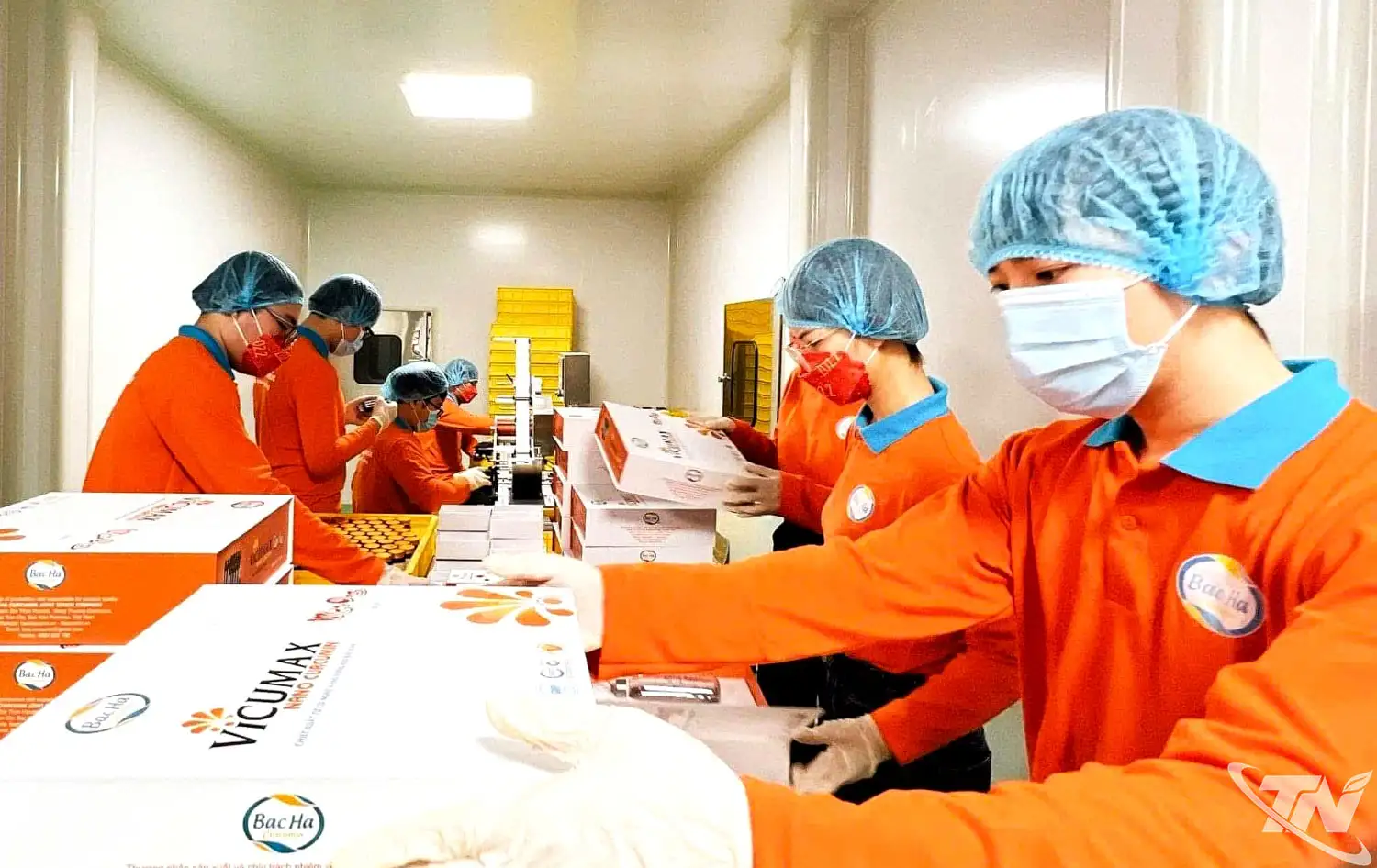 Nhân viên Công ty CP Công nghệ Dược liệu Bắc Hà đóng gói sản phẩm tinh bột nghệ.