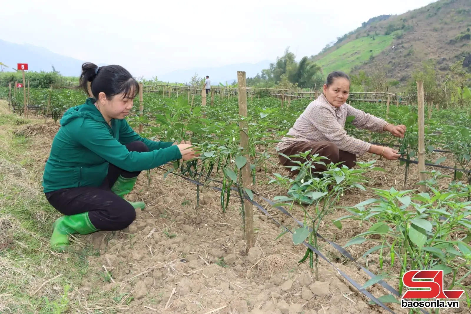 Trên cánh đồng tại bản Nà Kên, trước đây vụ đông bà con chủ yếu trồng ngô sinh khối làm thức ăn cho đàn đại gia súc; có nhà để ruộng bỏ hoang; thì nay, đã được thay thế bằng mô hình trồng ớt xuất khẩu. Dẫn chúng tôi thăm vườn ớt sai trĩu quả, chị Tòng Thị Duần chia sẻ: Nhà tôi có 280 m2 đất ruộng, tham gia trồng trồng ớt xuất khẩu, được cán bộ xã và công ty hướng dẫn kỹ thuật trồng, chăm sóc, cách phòng trừ sâu bệnh theo quy trình an toàn. Sau hơn 2 tháng trồng, ớt bắt đầu cho thu hoạch, sản phẩm được công ty bao tiêu thu mua với giá 20.000 đồng/kg. Dự kiến hết vụ, gia đình tôi thu hoạch hơn 3 tấn ớt tươi, trừ chi phí thu lãi hơn 50 triệu đồng.