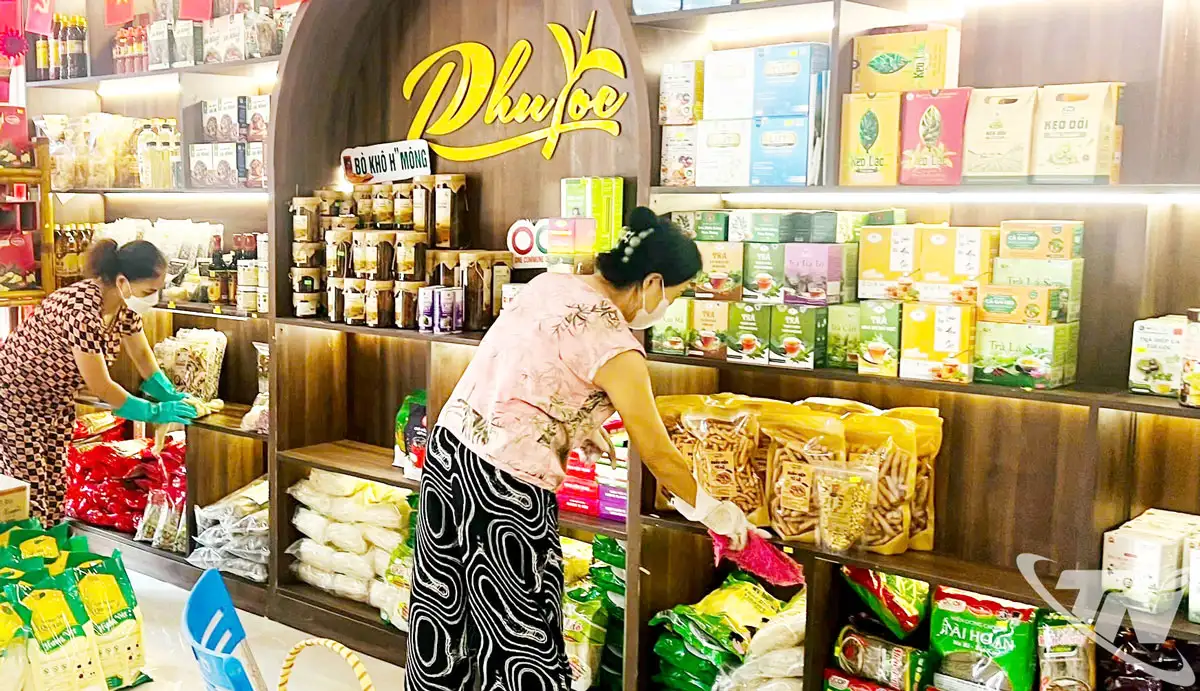 | Khu bày bán sản phẩm của HTX Phú Lộc (ở phường Phan Đình Phùng) – đơn vị chuyên cung ứng nông sản địa phương. Ảnh: T.L |