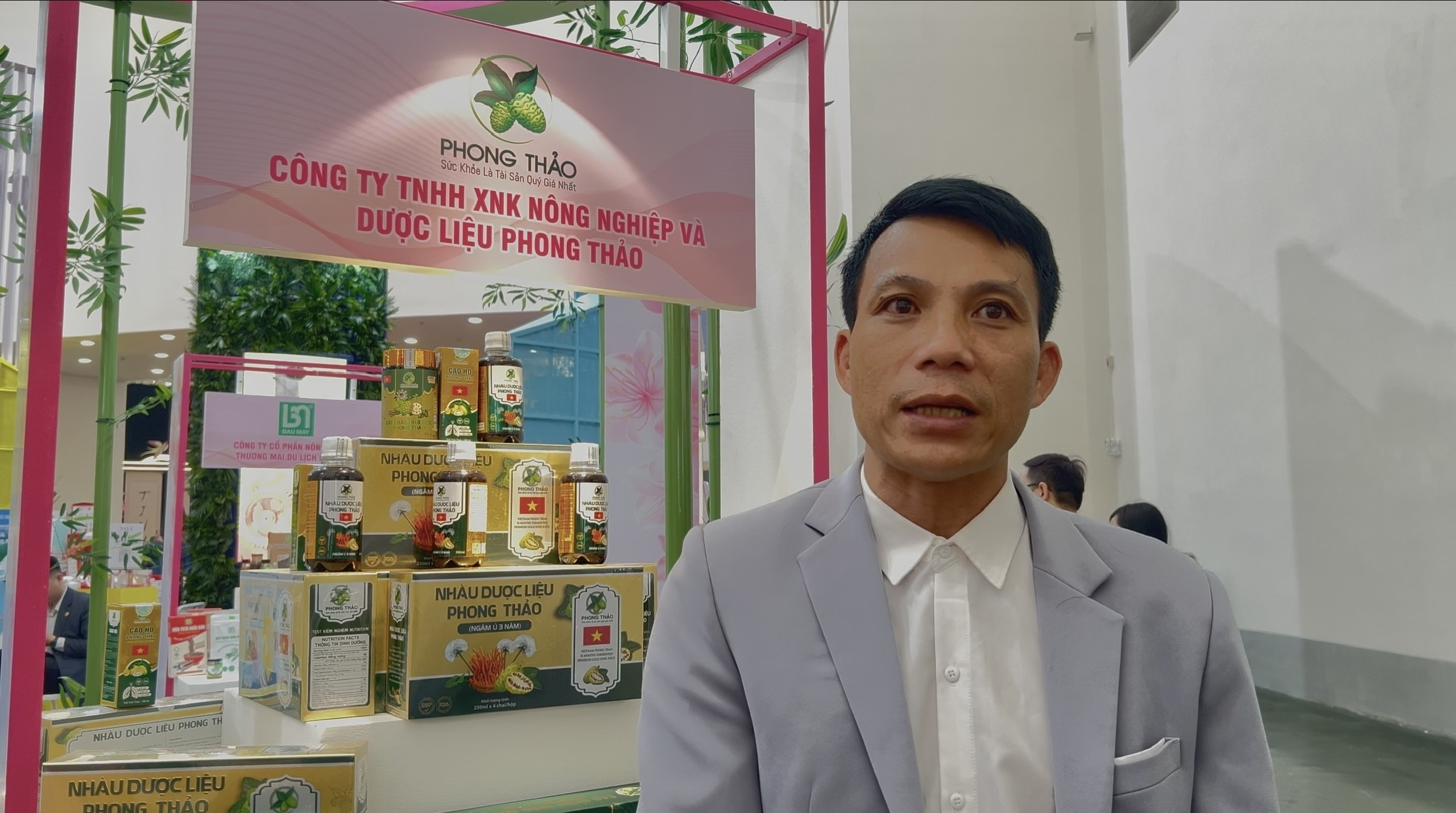 Không chỉ các hợp tác xã trong nước, Hội chợ Mùa Xuân còn thu hút sự tham gia của nhiều doanh nghiệp đến từ các địa phương xa, mang theo kỳ vọng mở rộng thị trường.Anh Tô Công, Giám đốc Kinh doanh, Công ty TNHH Xuất nhập khẩu Nông nghiệp và Dược liệu Phong Thảo, cho biết doanh nghiệp đã vượt quãng đường từ miền Nam ra Bắc để tham gia Hội chợ Mùa Xuân năm nay với các sản phẩm dược liệu được chế biến từ nhàu gai và cây thảo dược dân gian Việt Nam, đạt chuẩn OCOP 4 sao.