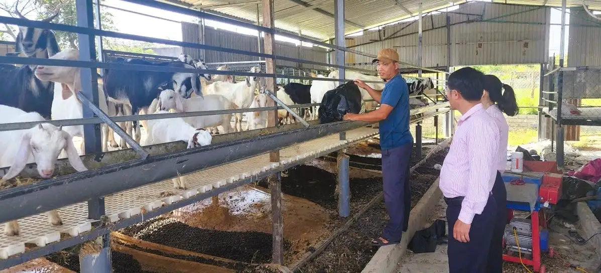 | Gia đình bà Trầm Thị Hồng (thứ 2 từ trái sang) ở xã Tân Định, Khánh Hòa được vay vốn, phục hồi sản xuất, chăn nuôi sau cơn lũ lịch sử. |
