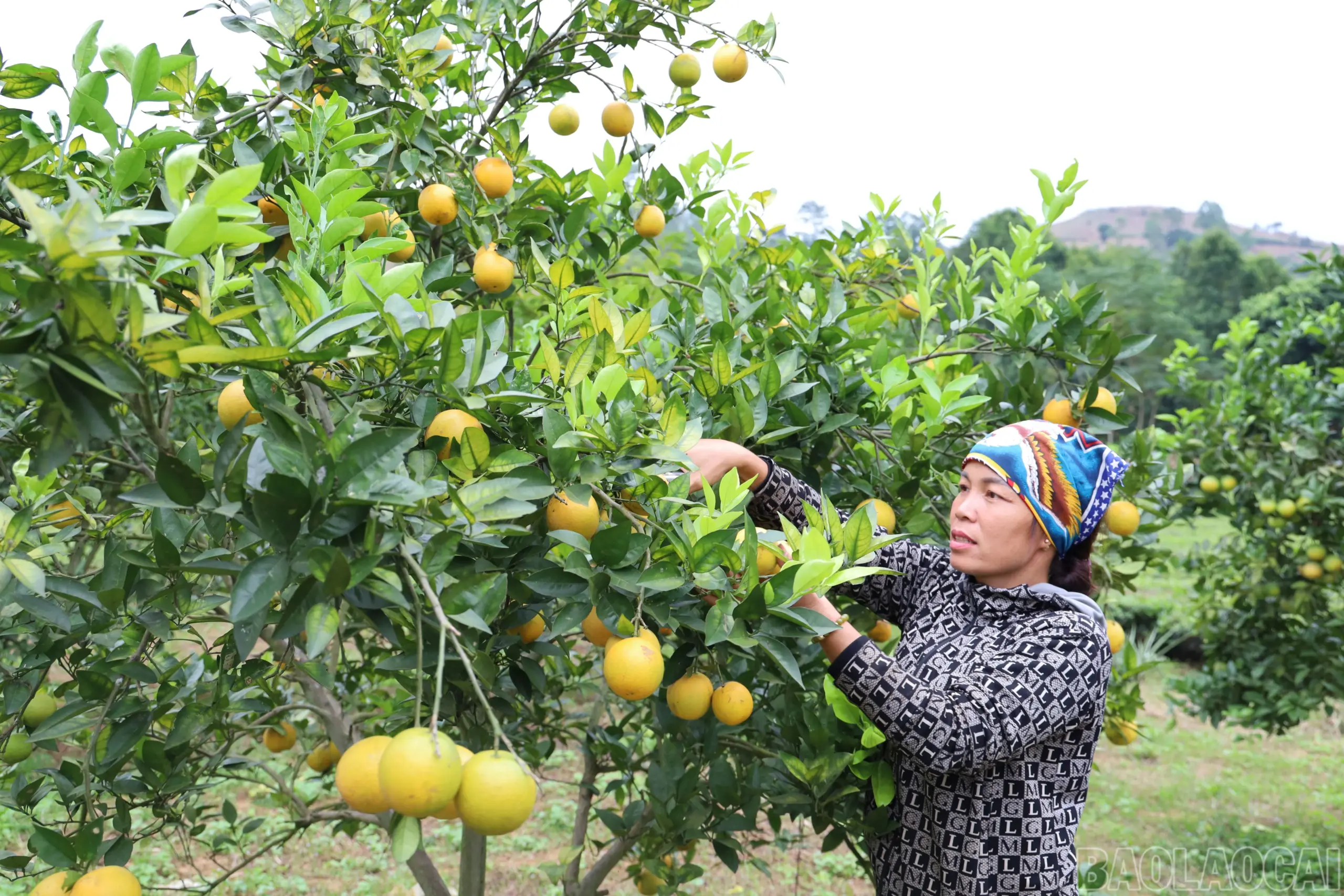 Thu hoạch cam ở vùng trồng cam xã Văn Chấn.
