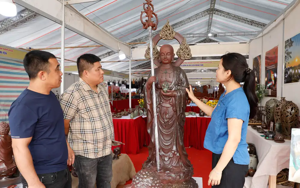 | Tác phẩm gốm Địa Tạng Vương Bồ Tát (cao 1,7m), sản xuất năm 2026 của Hợp tác xã Phù Lãng, xã Phù Lãng có giá trị nghệ thuật cao. |