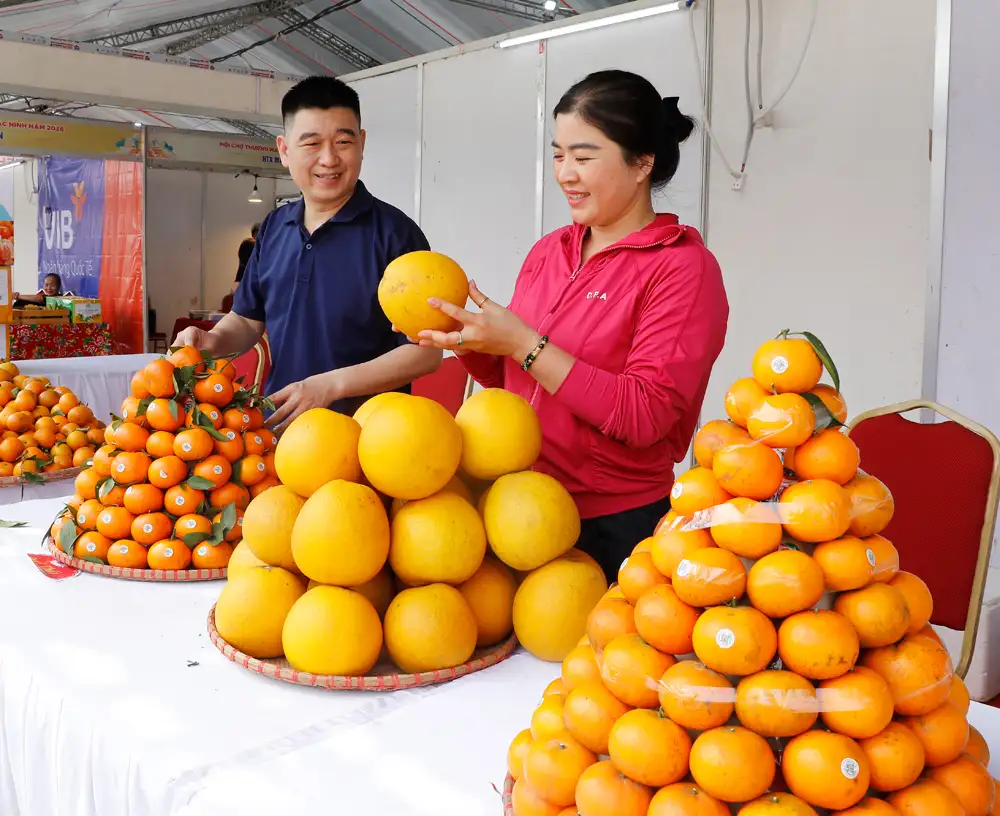 | Cùng với sản phẩm thủ công mỹ nghệ, các địa phương, doanh nghiệp, hợp tác xã còn mang đến hội chợ nhiều nông sản, nông sản chế biến, sản phẩm OCOP nổi tiếng. Ảnh: Sản phẩm cam, bưởi của phường Chũ. |