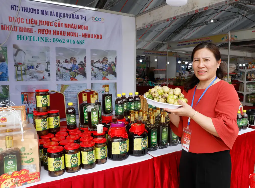 | Các sản phẩm được chế biến từ quả nhàu của Hợp tác xã Thương mại và Dịch vụ Hán Thị, xã Trung Kênh. |