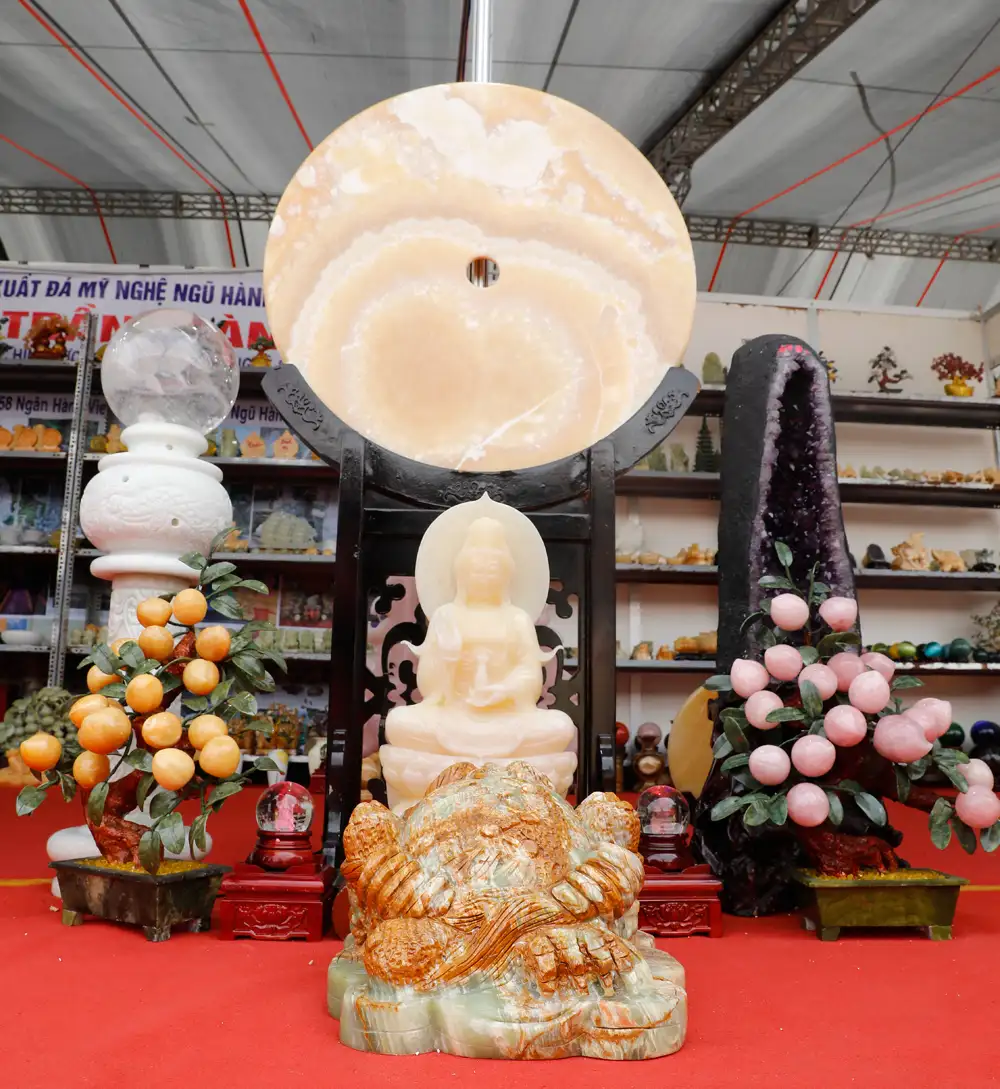 | Cụm tác phẩm Quan Thế âm Bồ Tát dưới trăng, chế tác từ đá quý của của hộ sản xuất, kinh doanh đá Ngũ Hành Sơn Trần Toán (Thành phố Đà Nẵng). |